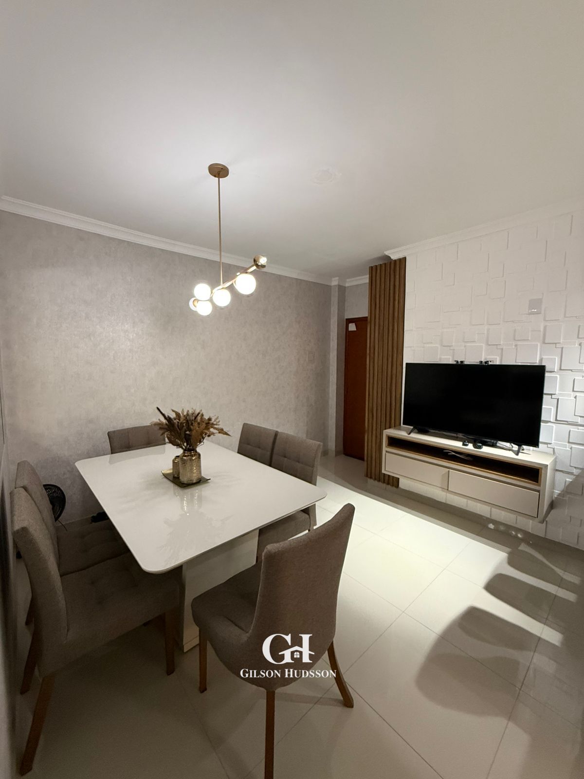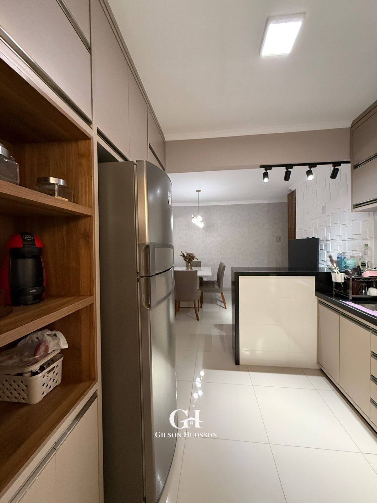 ➡️ Balcão com luminárias integrando a sala e cozinha.