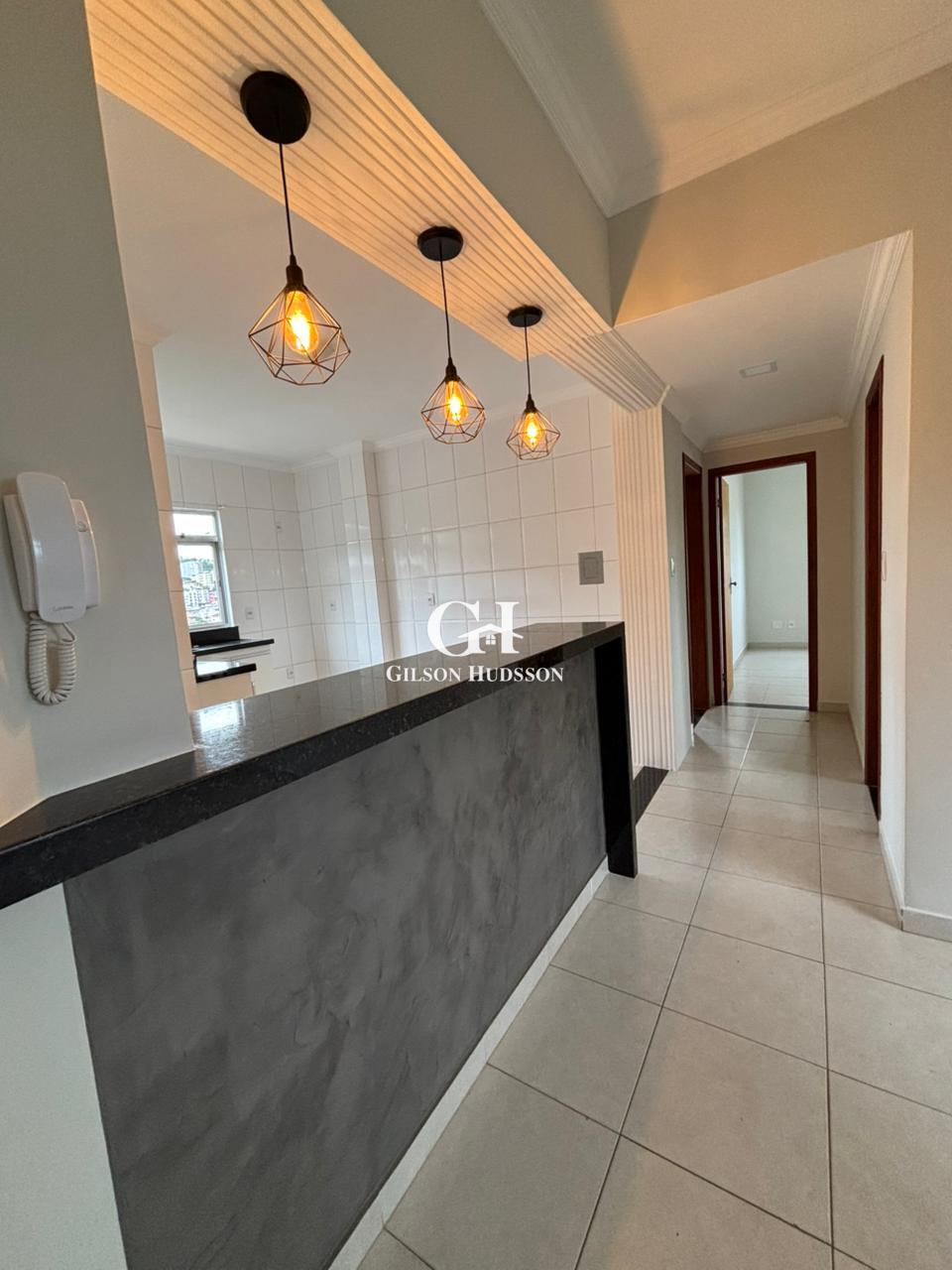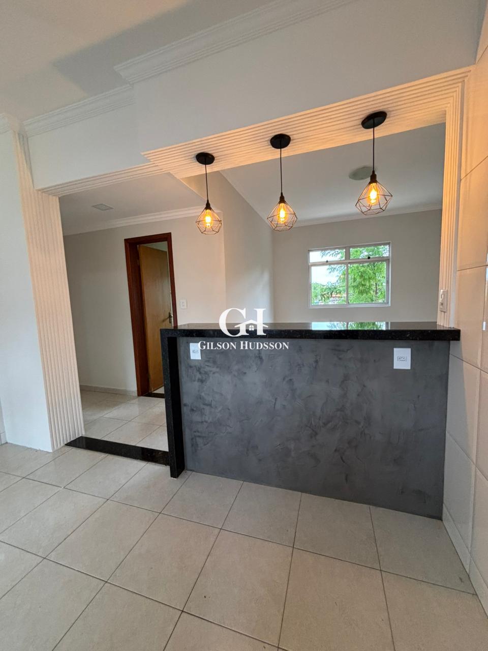 ➡️ Balcão com luminárias integrando a sala e cozinha.