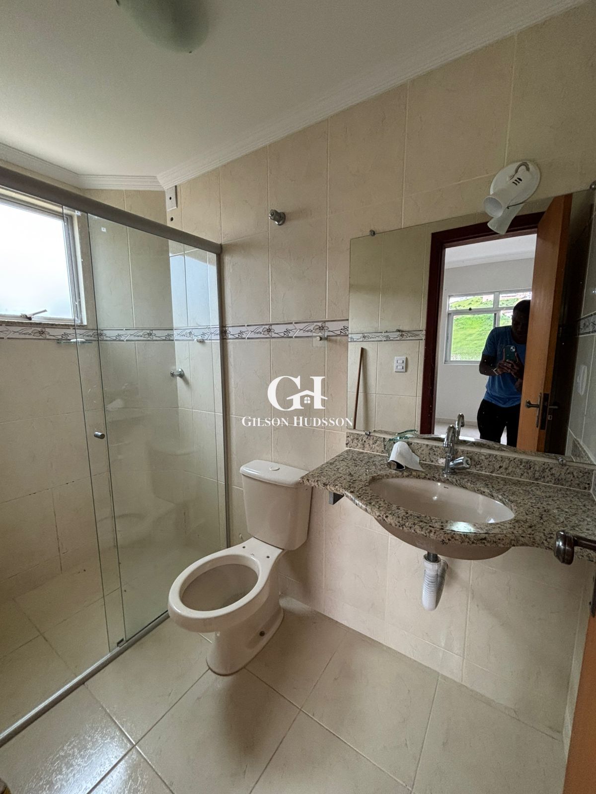 ➡️ Banheiro social com armário e box em blindex.