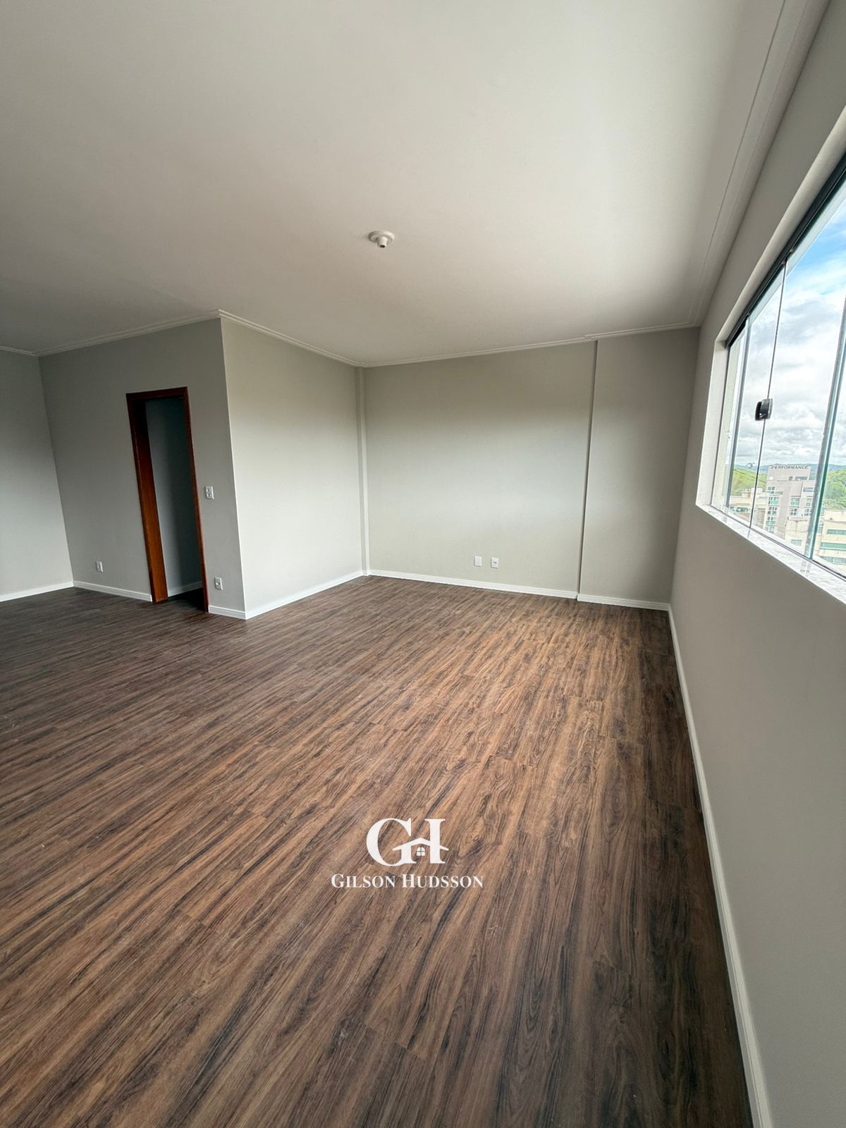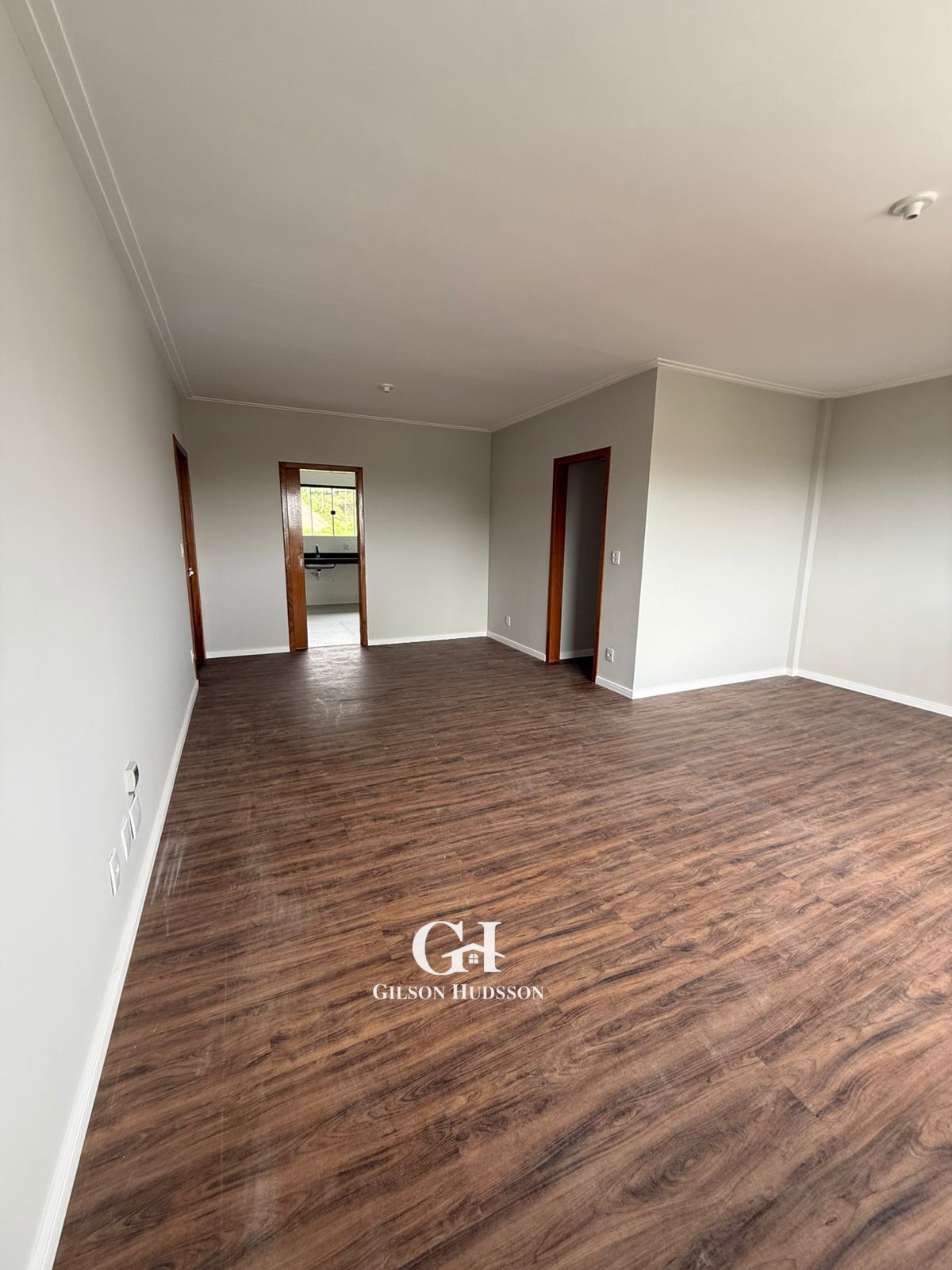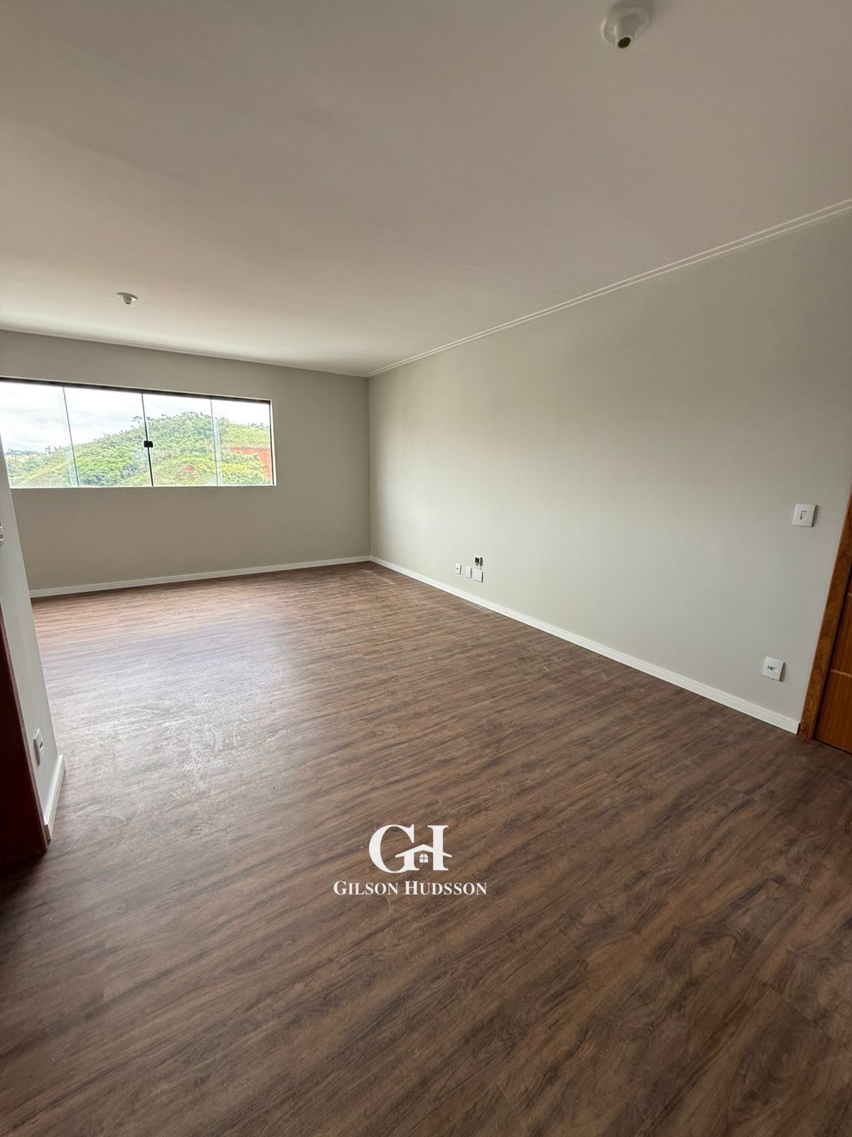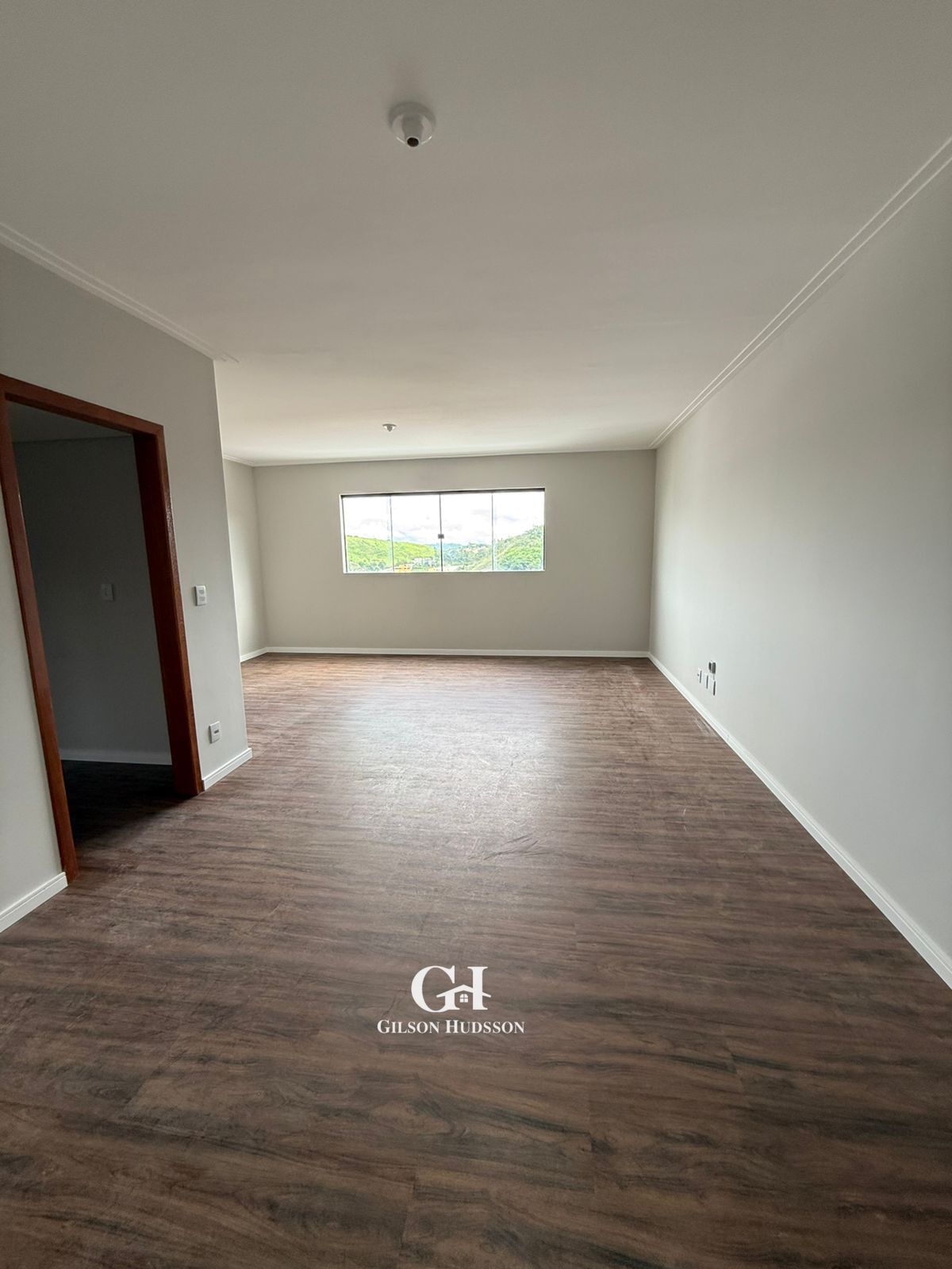 Sala ampla para dois ambientes.